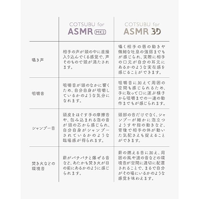 「超近接音場」に対応するASMR専用: 耳元近くに音像が定位することで、まるで自身がダミーヘッドマイクに入り込んだような臨場感を得ることが可能です。