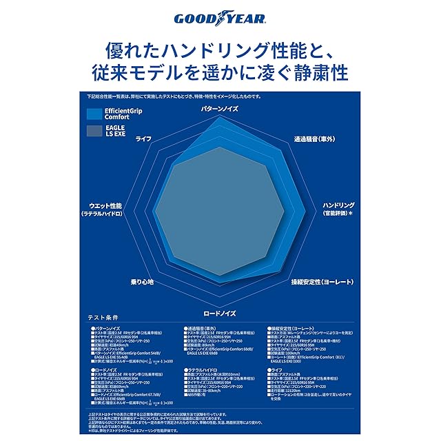 優れた燃費性能を実現 グレード「AA」を獲得薄く、軽量化したEfficientサイドウォールを採用。転がり抵抗性能テストにおいて優れた燃費性能を実証し、燃費性能グレード「AA」を獲得しました。