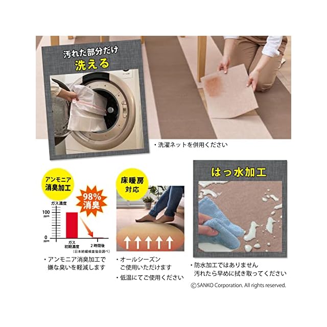 【日本製】 洗濯機OK(繰り返し使えます)、床暖房対応(推奨:低温)、ハサミでカット可能