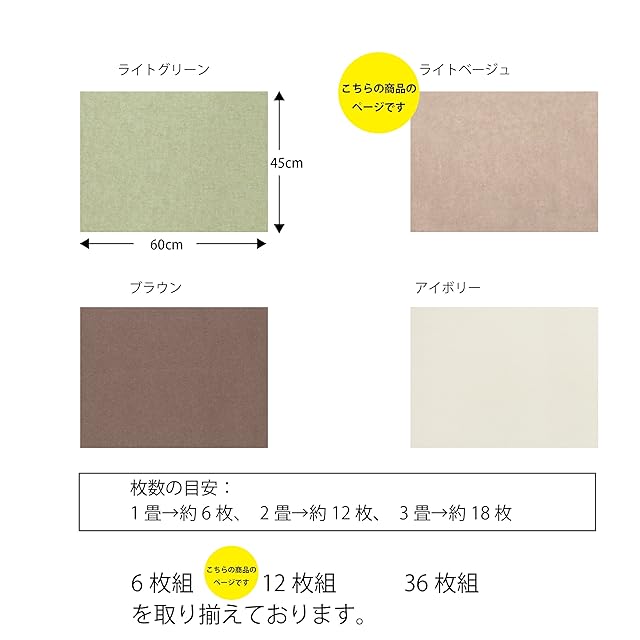 【サイズ】45×60cm(厚み3mm)、重量:125g(1枚)、セット内容:同色12枚組、【フラットタイプ】